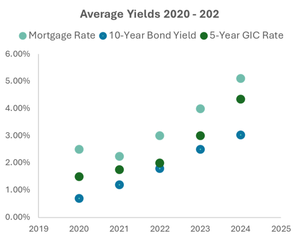 Fixed Income Investments - Historically, fixed income returns have been lower. For example, Canadian 10-year government bonds averaged around 3.7% in the 2010s, but recent returns have been negative (-3.5% from 2020 to 2023). Short-term investments like 90-day T-Bills have also offered modest returns, averaging around 0.9% in the 2010s and 1.8% recently.
